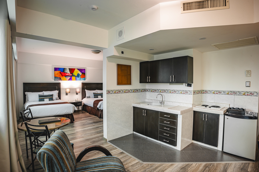Esta acogedora habitación de dos ambientes ( 42mts²) cuenta con sala, comedor, kitchenette y en otro ambiente el dormitorio con dos camas de 02 plazas; tiene todas las comodidades para una experiencia única:
