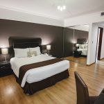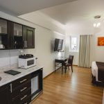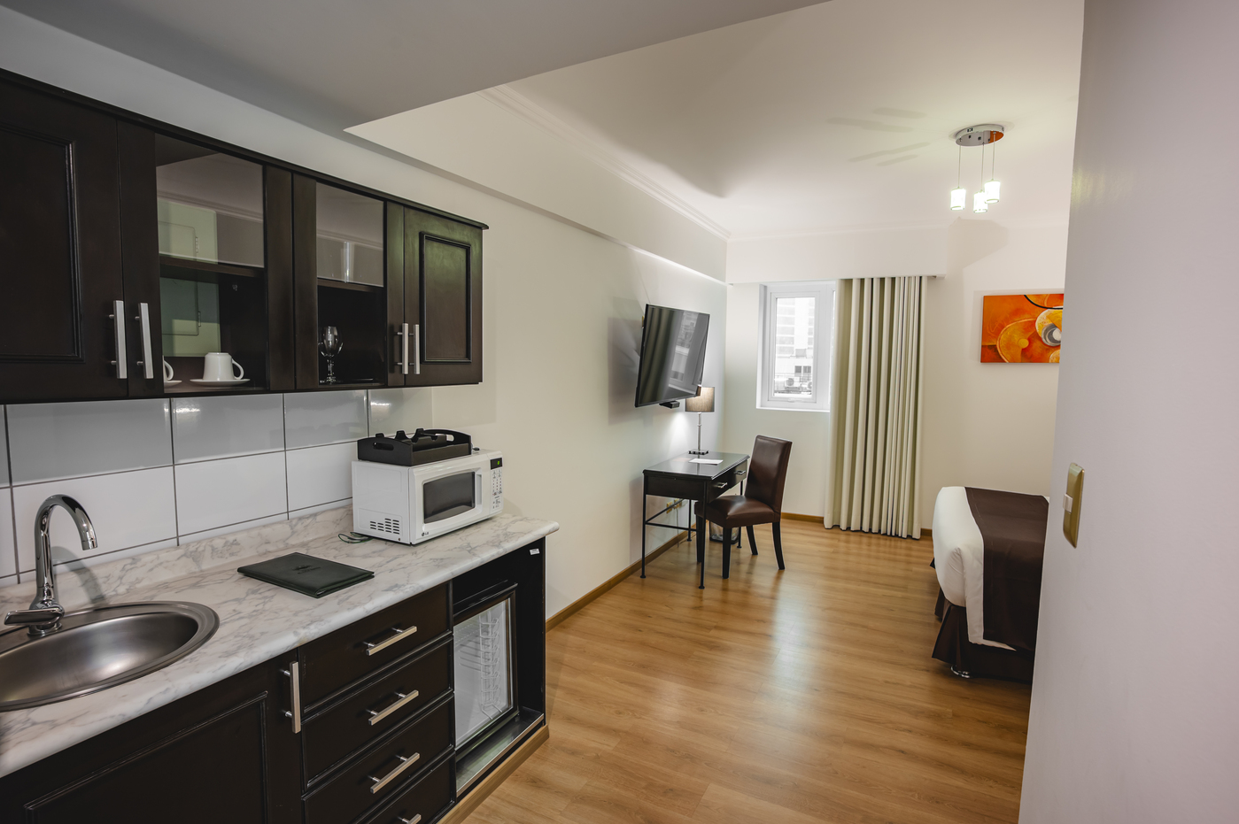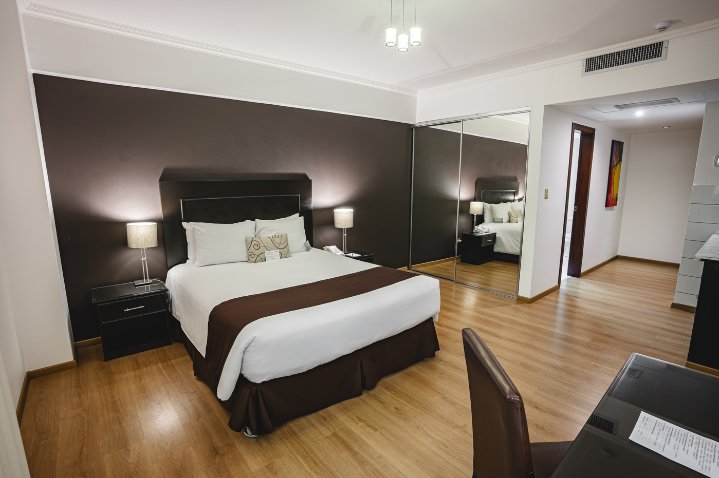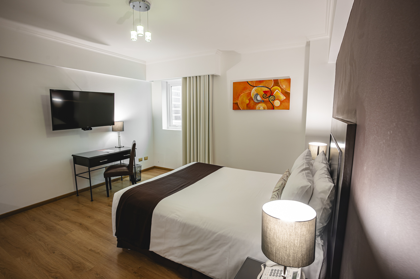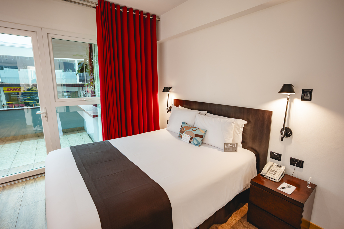 Habitación moderna de aproximadamente 25 m², con vista a la calle o al centro comercial. Ideal para quienes buscan un poco más de espacio y comodidad.