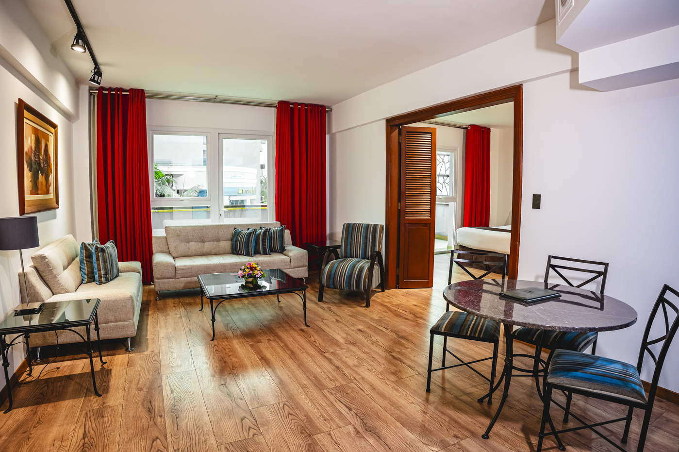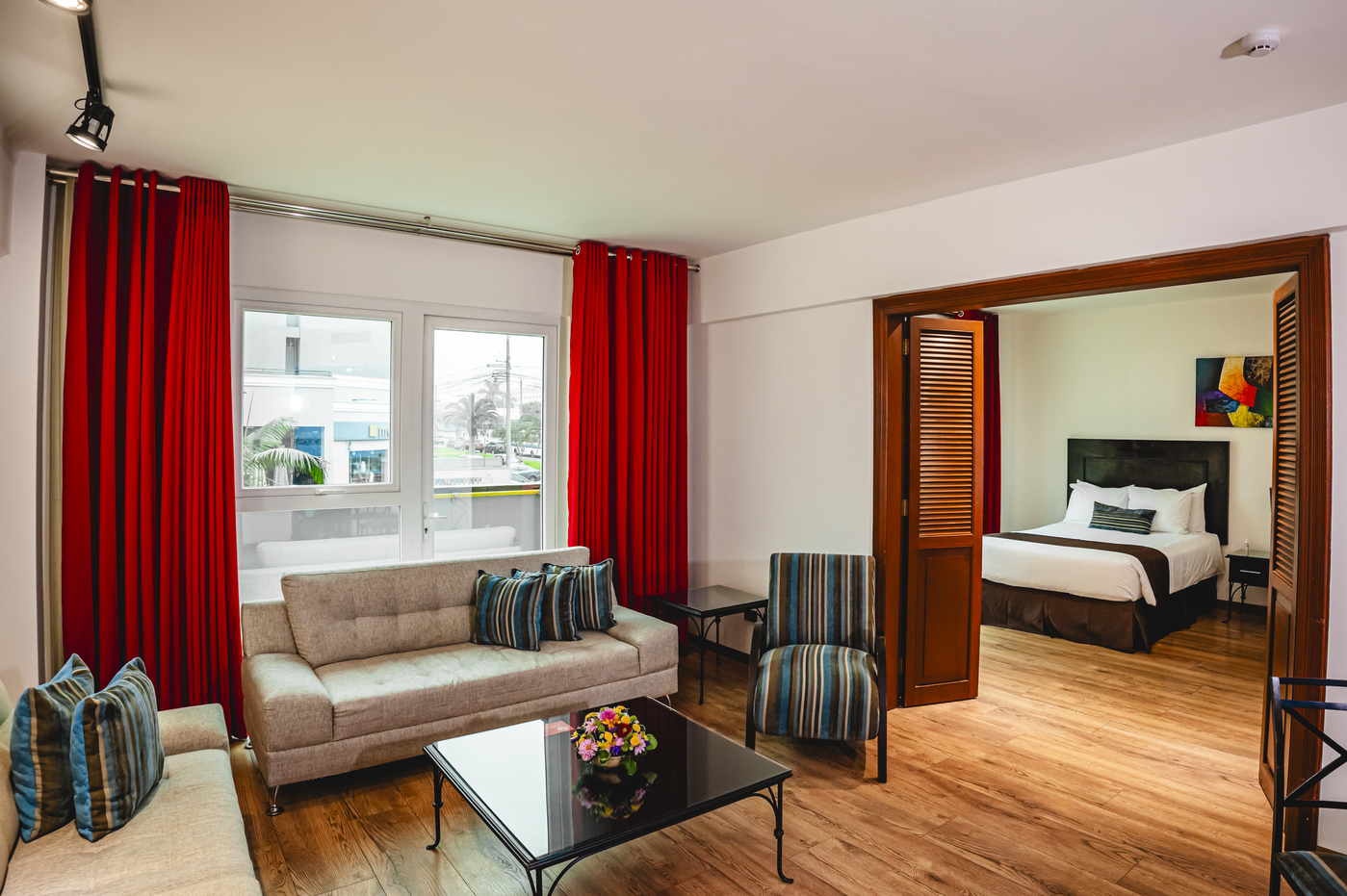 Esta amplia habitación de dos ambientes (60 mts2 ) cuenta con sala, comedor, kitchenette y en otro ambiente el dormitorio con una cama King size; tiene todas las comodidades para una increíble experiencia.