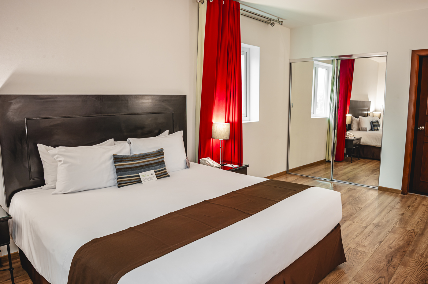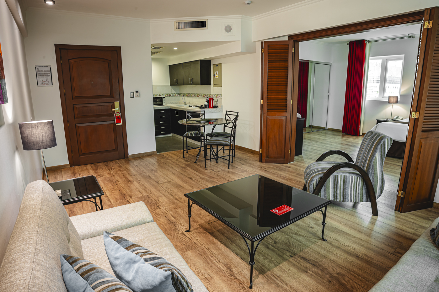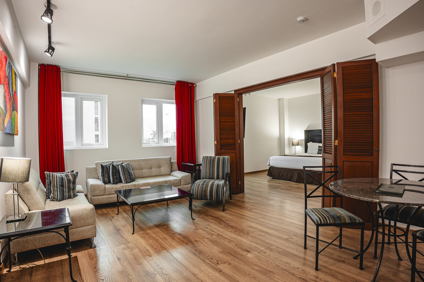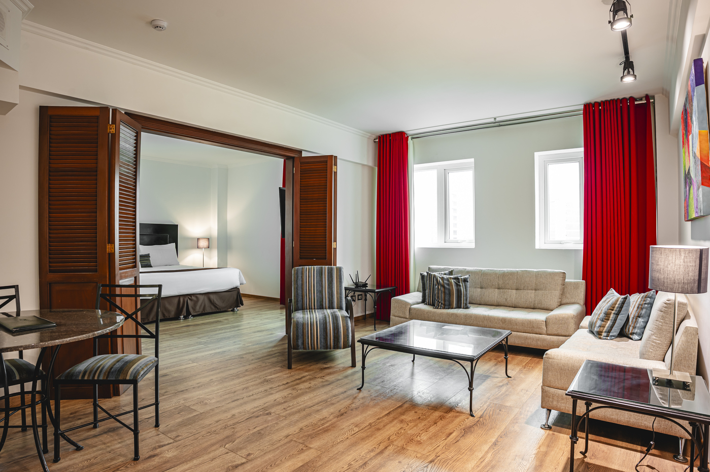 Suite de dos ambientes con unos 40 m². Cuenta con sala/comedor y dormitorio principal. Muy apropiada para estancias más largas o familias pequeñas.